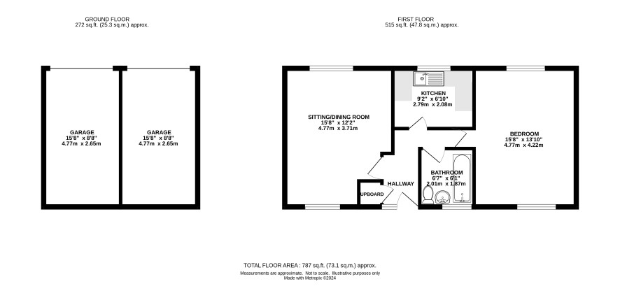 This coach house style property is a freehold flat accessed via a staircase with accommodation on one level. Situated in a cul-de-sac on a development within the popular area of Carlton Colville. The property offers generous accommodation comprising entrance hall, sitting room, kitchen, large bedroom and bathroom. Externally the property has a front garden and a driveway leading to the rear where there is an enclosed fenced garden, a timber shed a double garage (one is vacant the other has been let on a 99 year lease to a neighbour however you own the freehold of the garage). This would make an ideal rental property for an investor or project for a first time buyer.