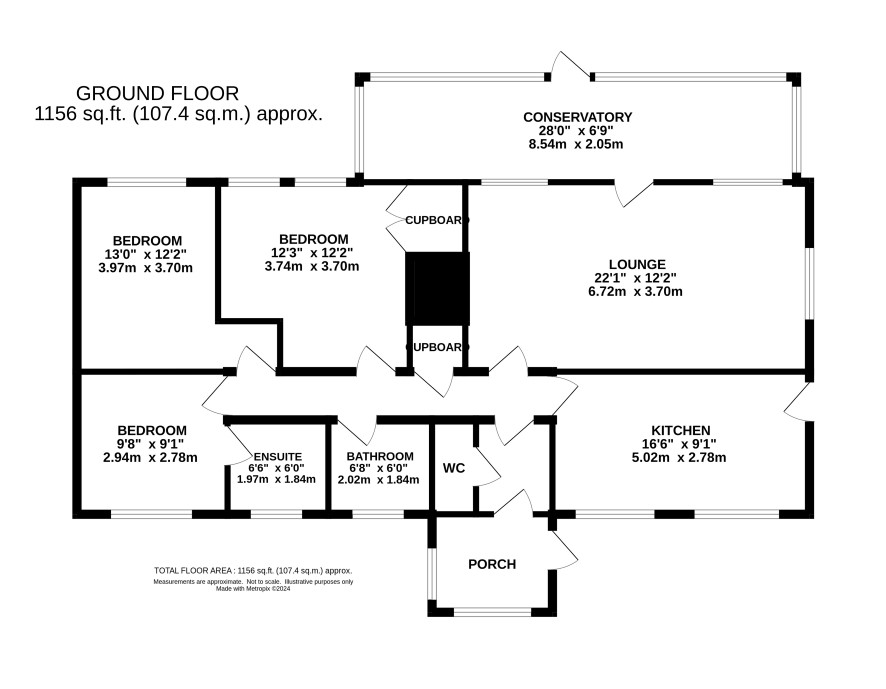 Entrance porch, inner hall, cloakroom, sitting room, conservatory, kitchen, three bedrooms one with ensuite shower room, bathroom
