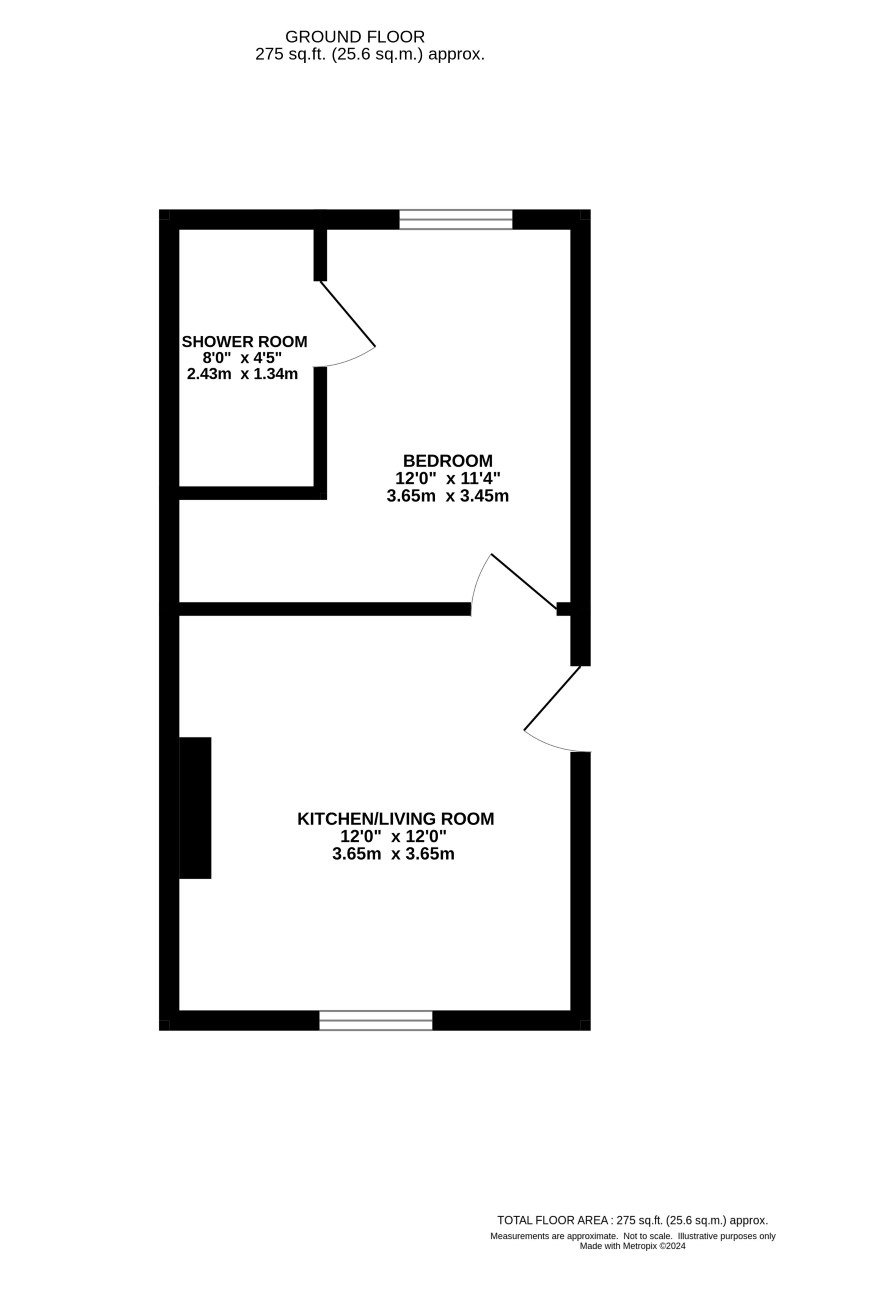 Open plan living room/ kitchen, bedroom, shower room