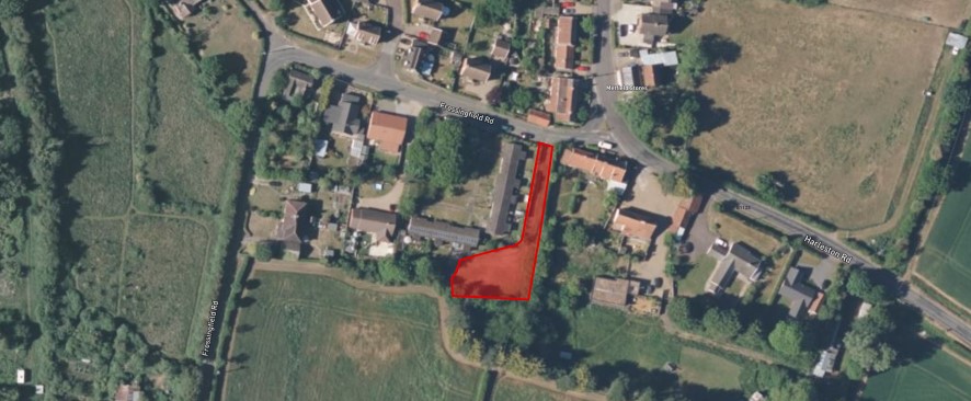 This broadly L shaped parcel of land extends to around 0.2 of an acre stms with mature trees and hedges surrounding most of the site. The grass land adjoins residential properties to the east and west side and an outlook over open countryside to the south. The site has direct road access, gated entrance off Fressingfield Road and sits in a secluded setting in in the small village of Metfield which is located five miles south east of Harleston and 30 mins from Southwold. The land offers a range of potential uses, subject to the necessary consents.