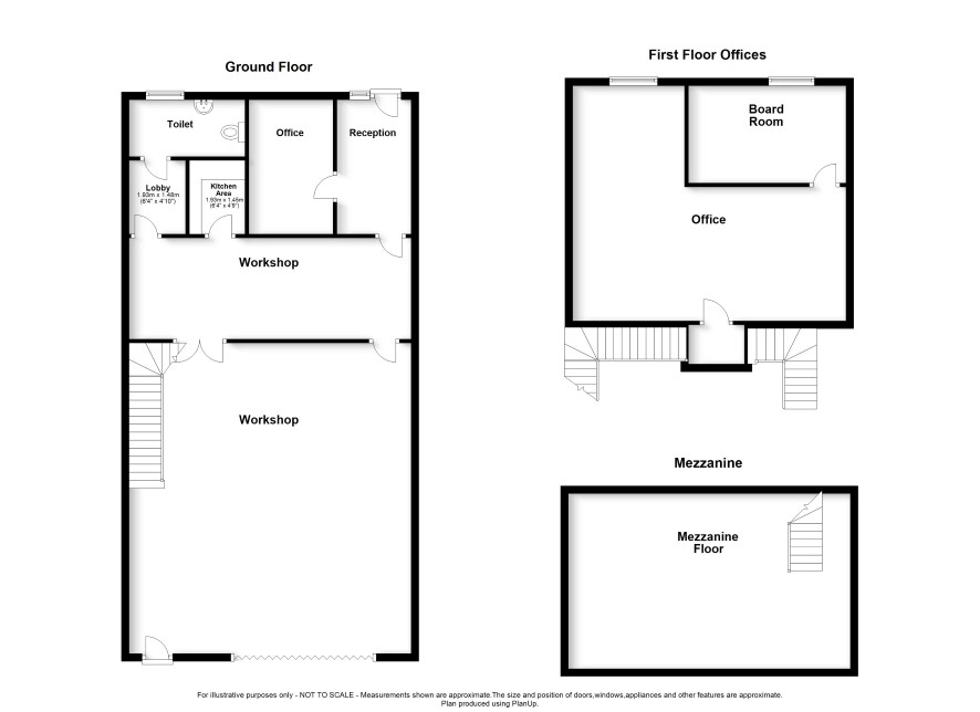 Offices and facilities room, landing stairs to mezzanine floor Board room 4.12m x 2.55m, office 7.31m x 6.28m