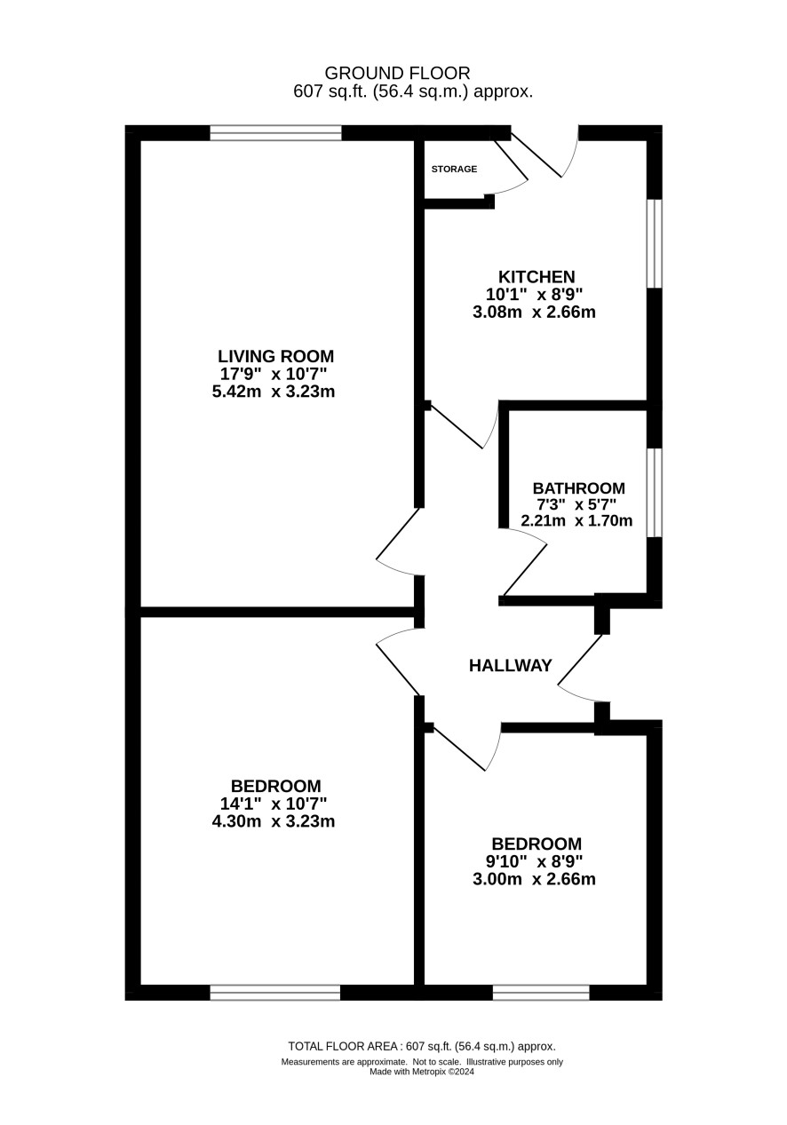 Entrance Hall Lounge - 17'8" x 10'6" Kitchen - 10' x 6'5" Bedroom - 14' 10" x 10'6" Bedroom 2 - 10' x 8'7"