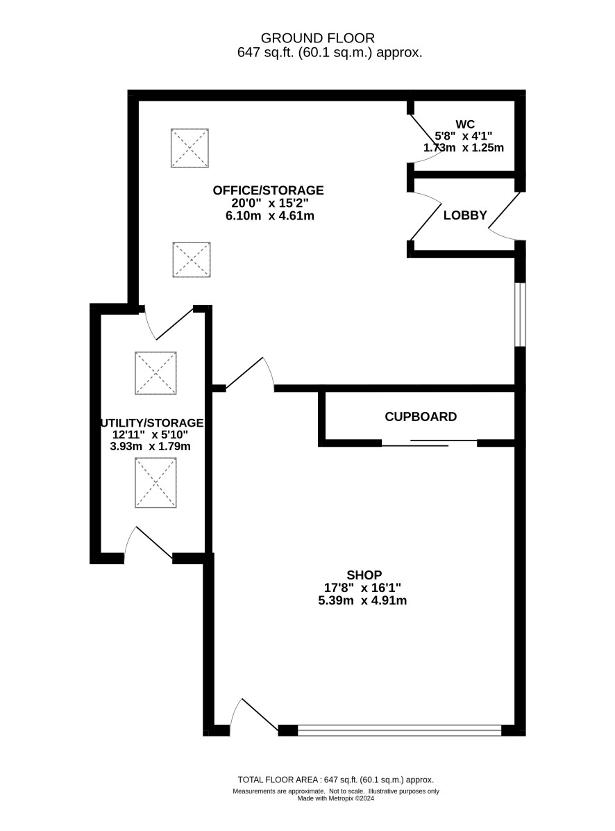 Shop area, rear preparation area and offices, store and wc. To the front there is a forecourt area and there are small side and rear gardens