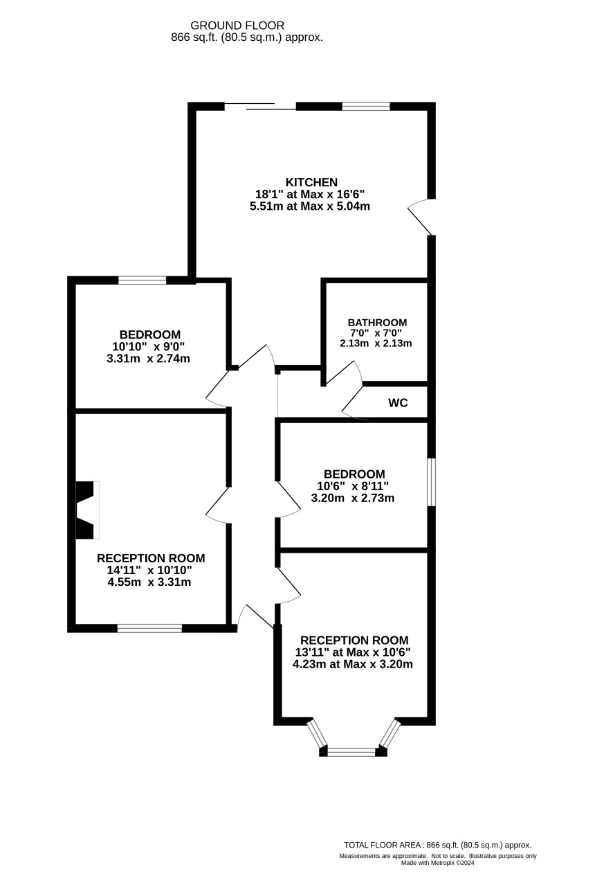 Entrance hall, three bedrooms, sitting room, bathroom, wc, kitchen/dining room