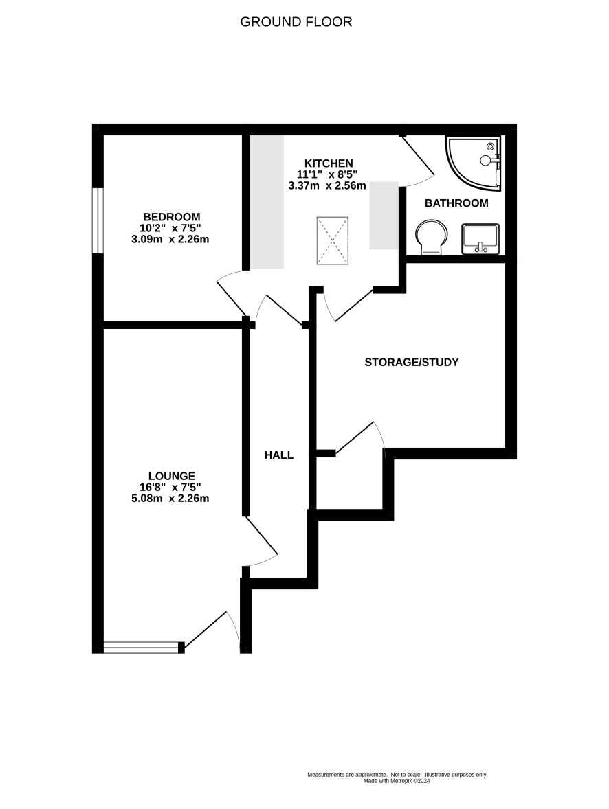 Lounge, inner hall, kitchen, bedroom, study/storage room, shower room