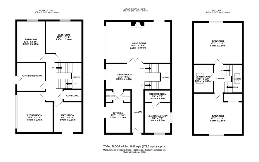 Entrance hall, kitchen, ensuite bedroom, dining room, living room