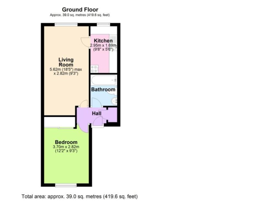 Entrance hall, lounge/dining room, kitchen, bedroom, bathroom.
