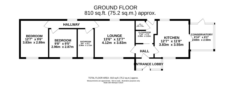 Entrance lobby, hall, lounge, kitchen, conservatory, utility/cloakroom, two bedrooms, bathroom