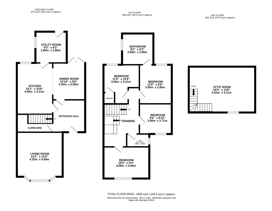Landing, four bedrooms, bathroom, wc
