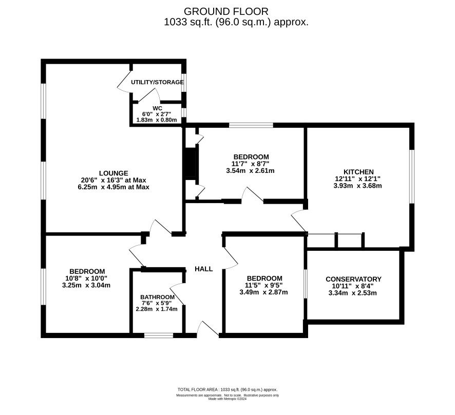 Entrance hall, bathroom, three bedrooms, lounge, kitchen, conservatory, wc, utility