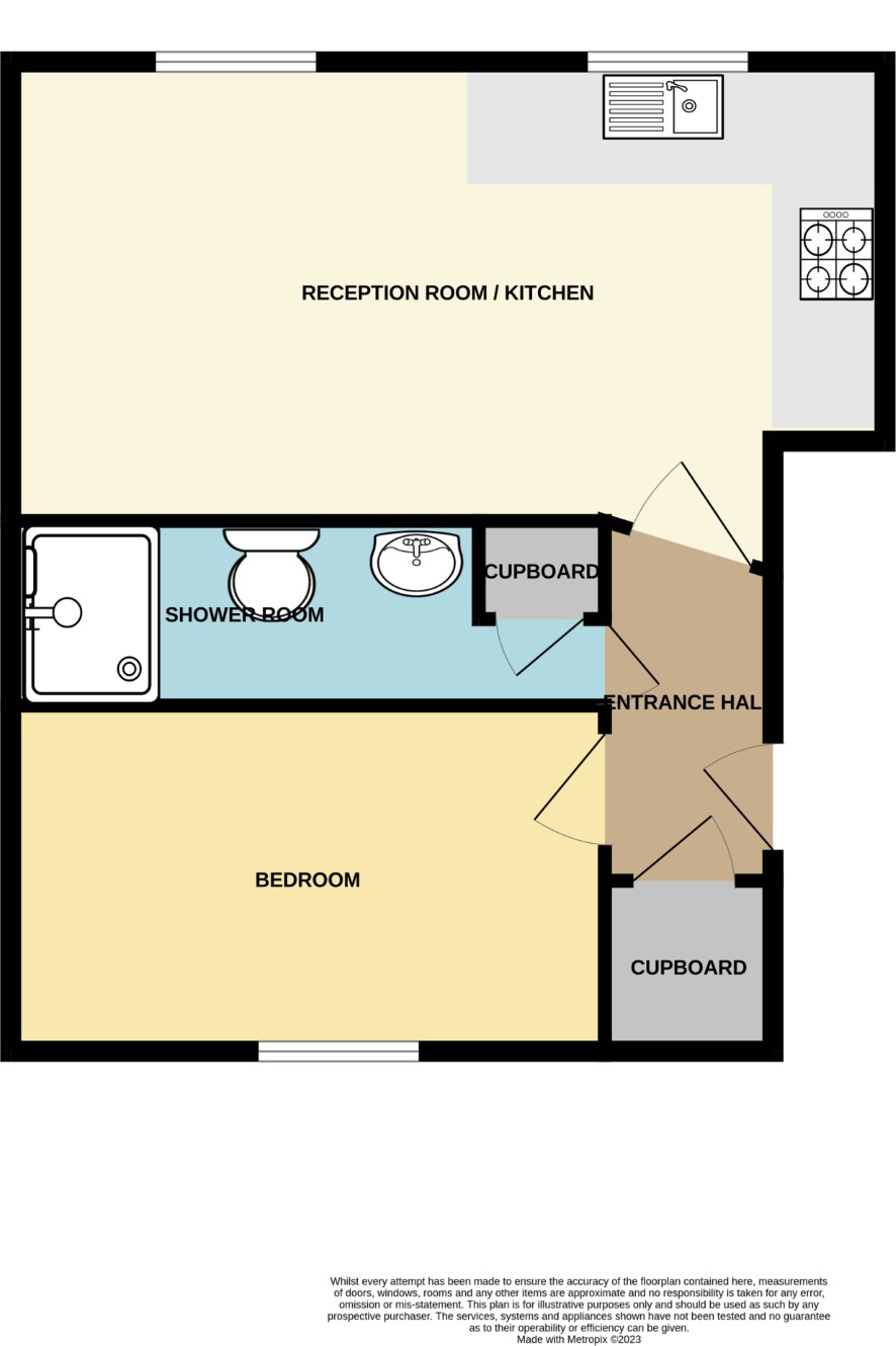 Living room/kitchen, bedroom, shower room