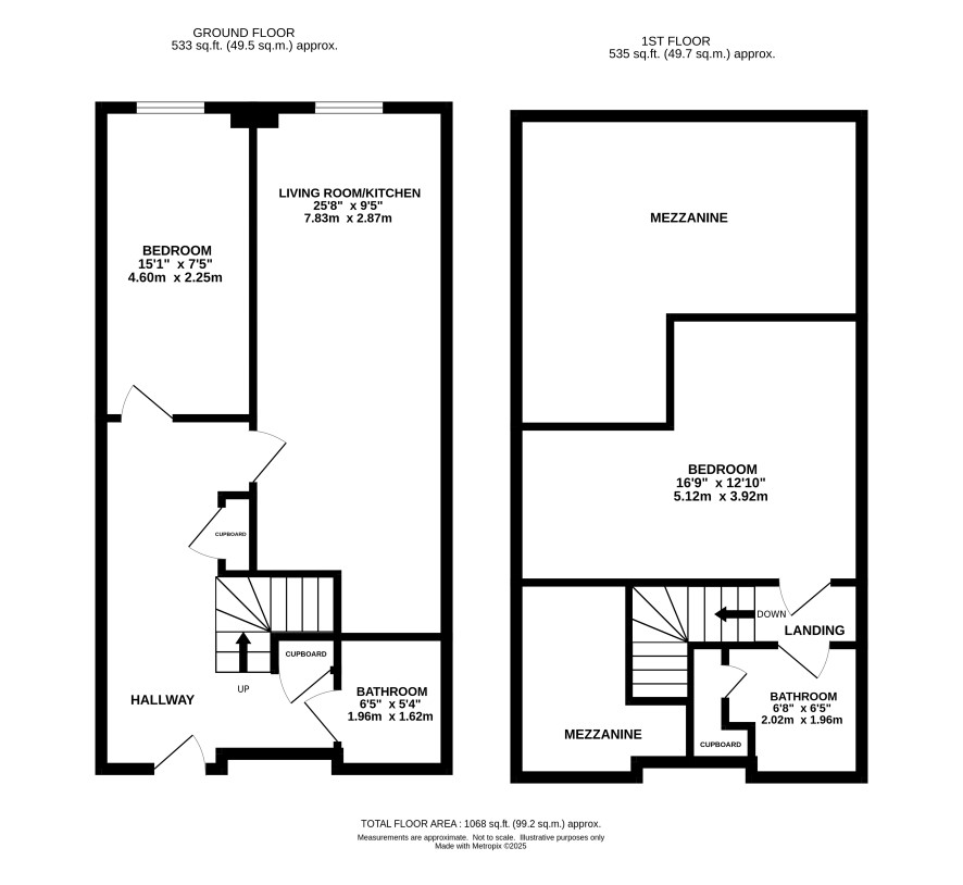 Mezzanine bedroom and separate bathroom.