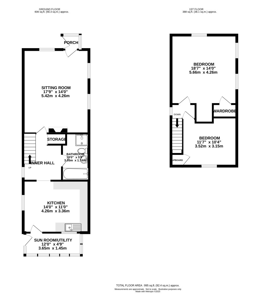 Front porch, sitting room, inner hall with stairs to first floor, bathroom, kitchen/diner, rear sun room.