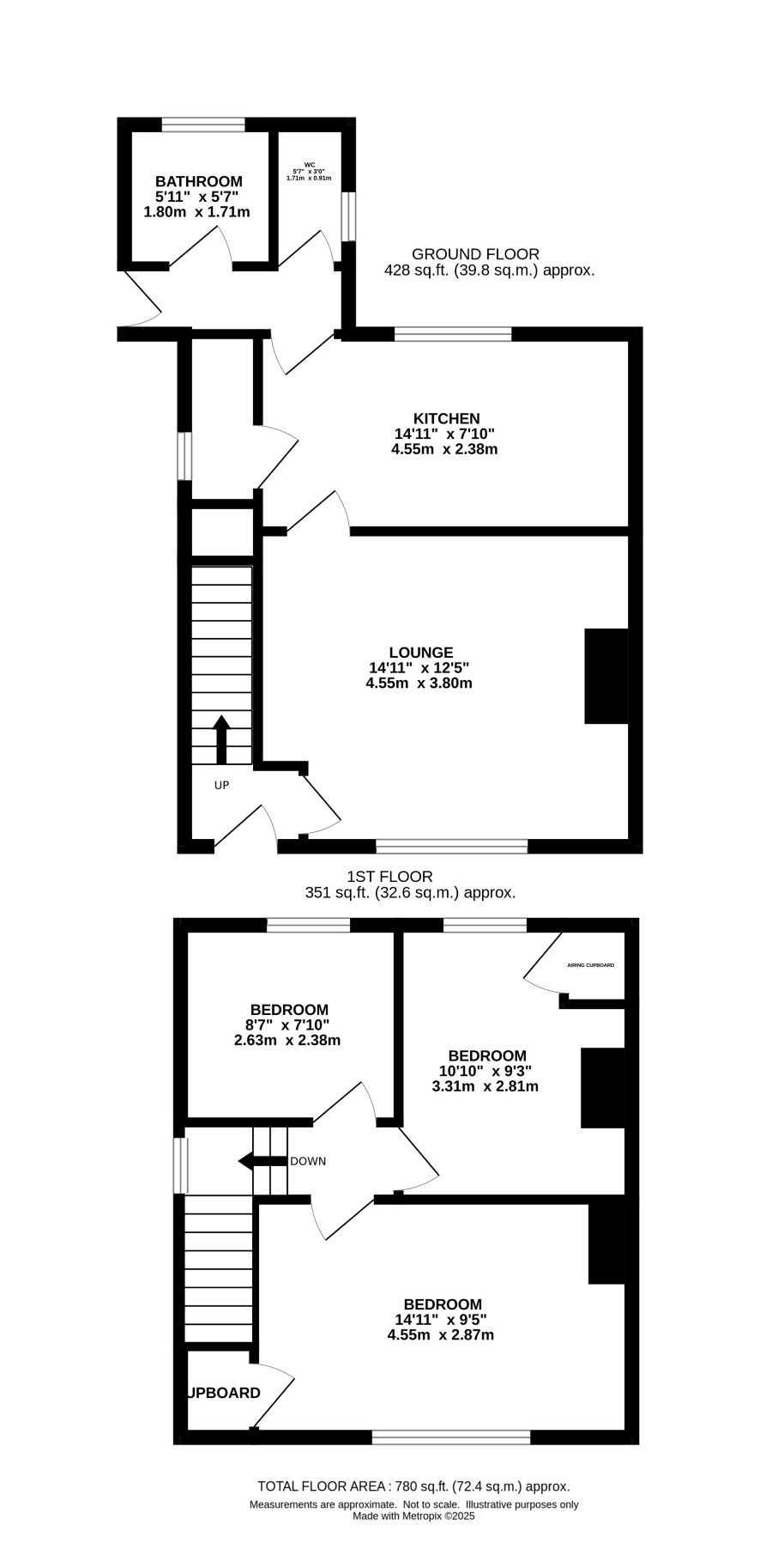Landing, three bedrooms