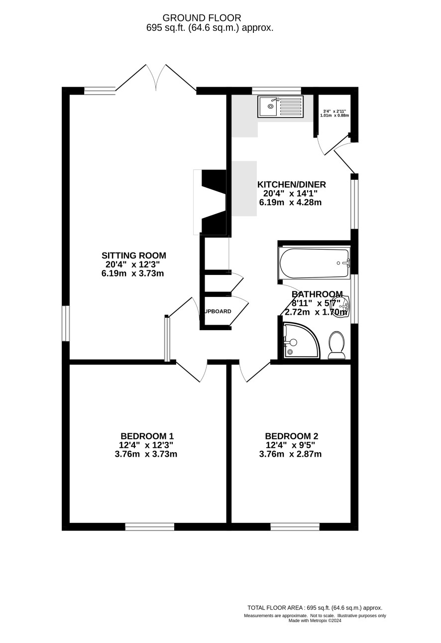 Kitchen/diner, sitting room, two double bedrooms and bathroom with separate shower.