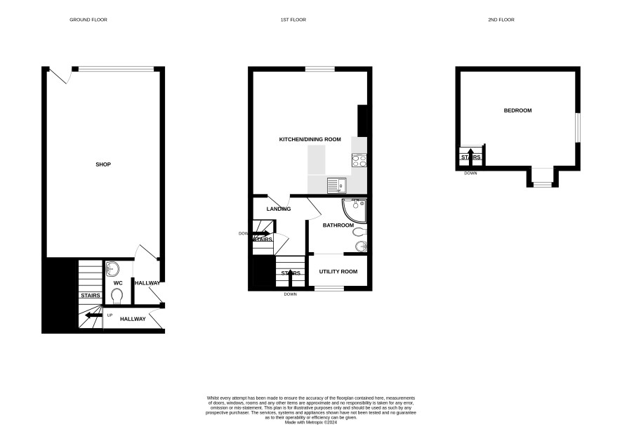 Stairs lead to first floor, sitting room, kitchen, shower room and utility area, stairs to second floor bedroom