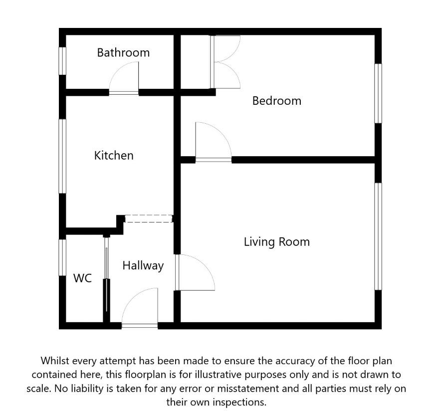Hallway, wc, kitchen, bathroom, bedroom, living room.