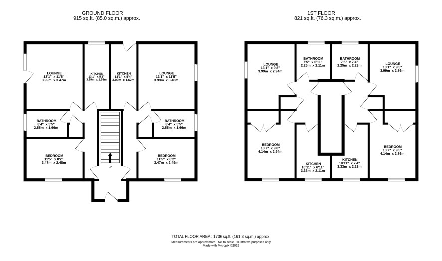 Two flats each comprising lounge, kitchen, bedroom and bathroom