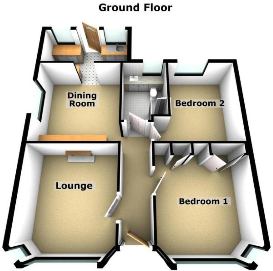 Hallway, lounge, dining room, kitchen, two bedrooms, shower room