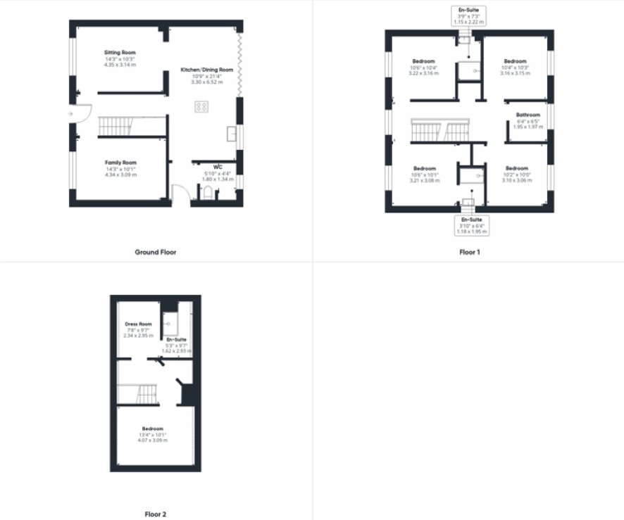 Entrance hall, family room, sitting room, kitchen / dining room, wc