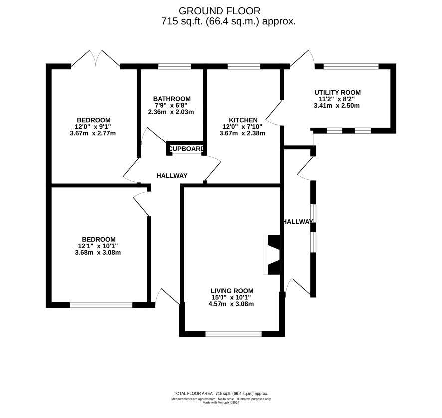 Entrance hall, sitting room, kitchen, utility room, rear porch, two bedrooms and bathroom.