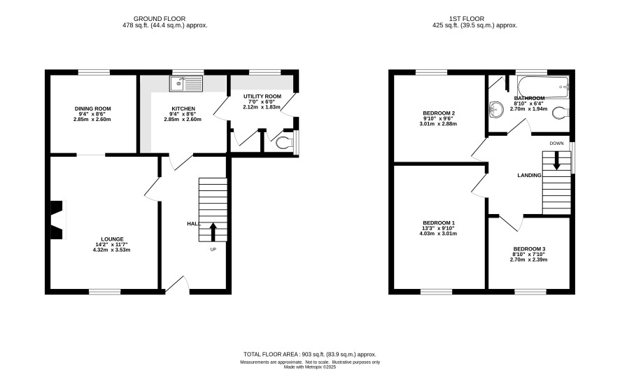 Hall, lounge, dining room, kitchen utility and a w.c.