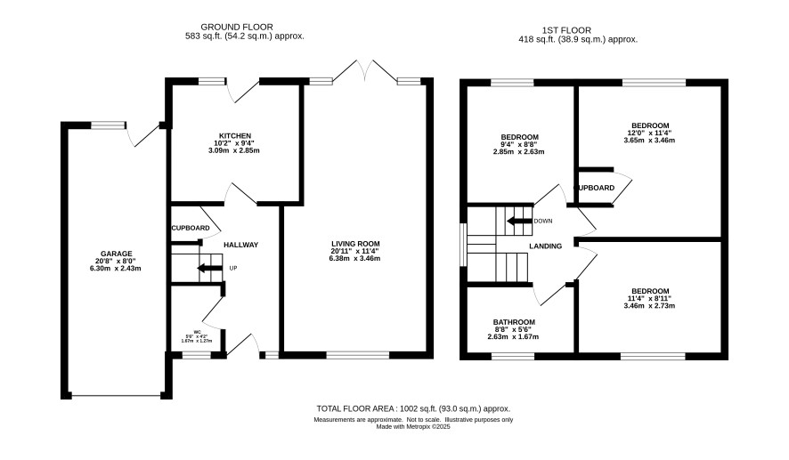 Attached garage, off road parking, front and rear lawned garden, timber shed