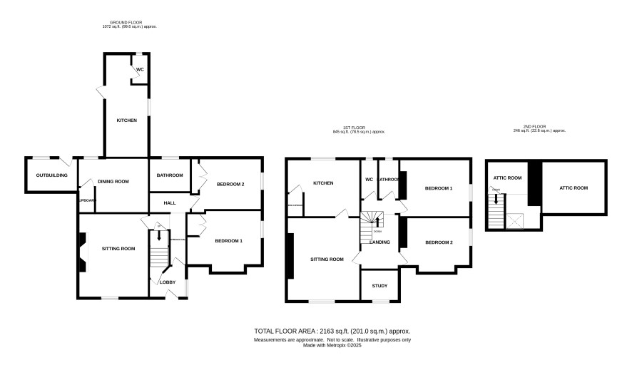 Sitting room, kitchen/breakfast room, two bedrooms, study, bathroom with separate cloakroom, two attic rooms.