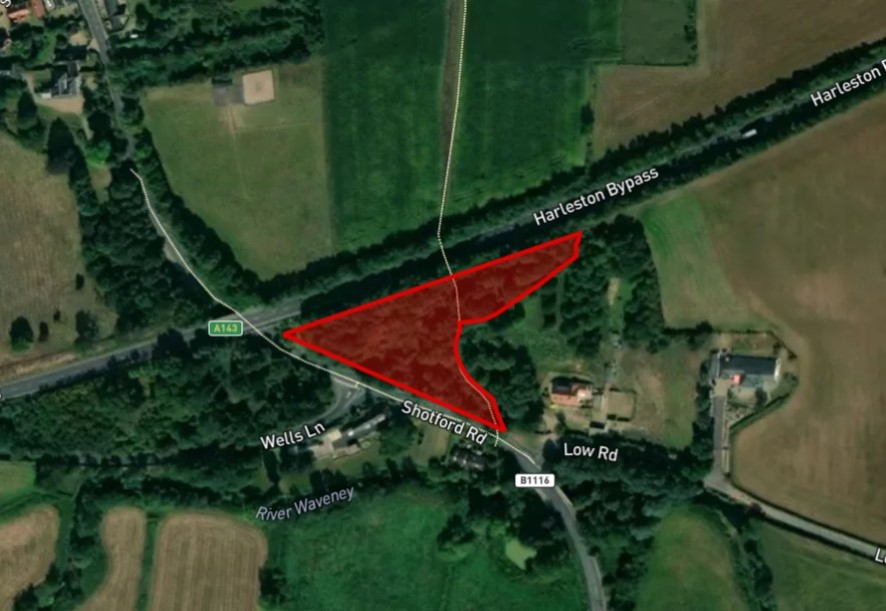 Irregular shaped amenity land measuring 1.63 acres / 0.66 hectares (stms) situated on the edge of Harleston.