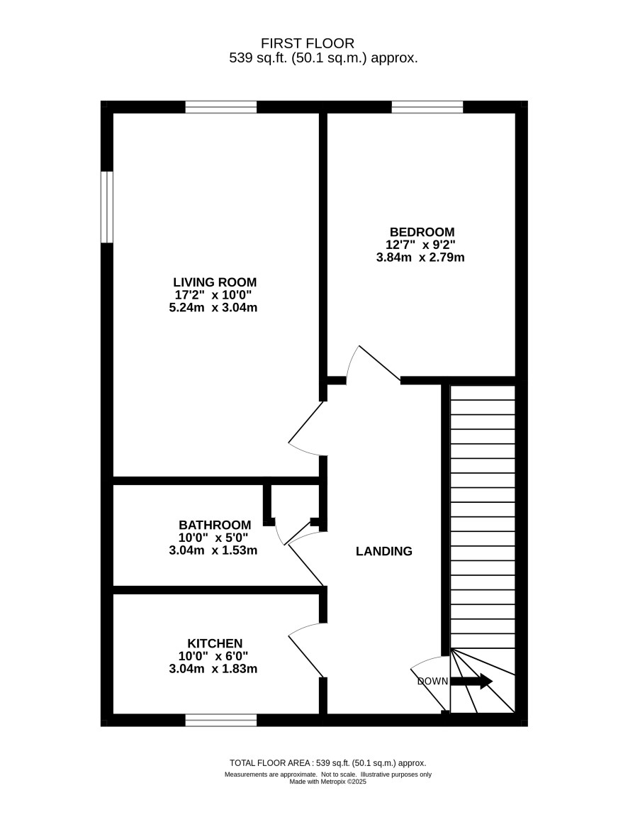 Entrance hall 14'4" x 2'6" Living room 17.'3 x 14'3" (Max as sloping ceilings) Bedroom 12'7" x 9'2" Kitchen 10' x 6' Bathroom 9'4" x 5'