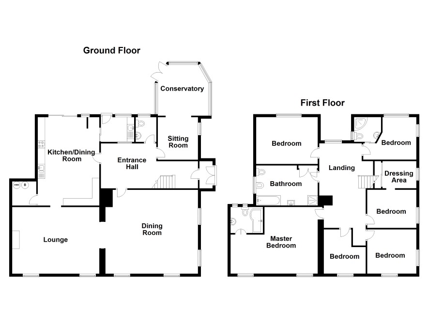 Lounge, dining room, kitchen/ diner, sitting room, conservatory and wc