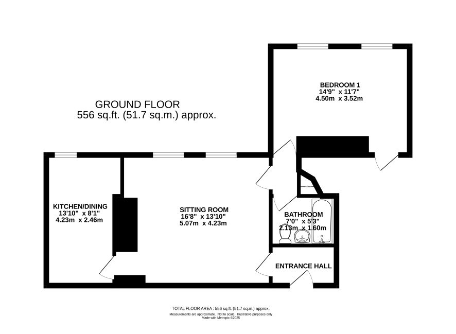 Entrance lobby, sitting room, kitchen/dining area, inner lobby, bathroom, bedroom with fire exit