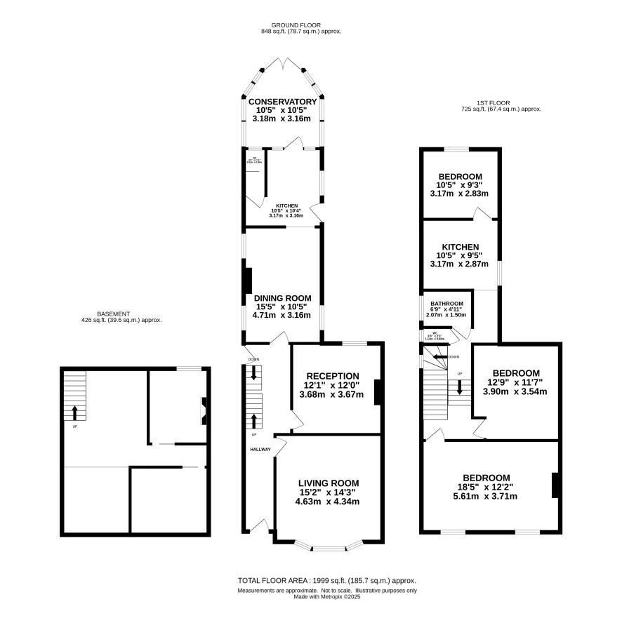 Entrance Hall 26' x 6'2 max Lounge 14'3" x 14'3" Dining Room 12' x 12' Morning Room 15'6" x 10'9" Kitchen 10'3" x 10.4" WC 6' x 3'6" Conservatory 10'6 x 10'4"