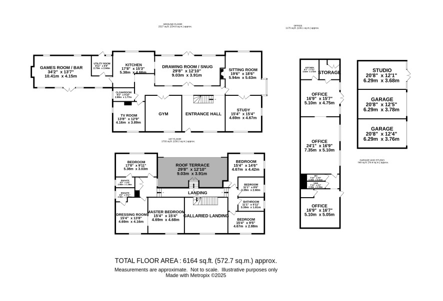 27.5 acres of parkland grounds including well cared for and landscaped formal gardens, with various paddocks, woodland areas and parking. There are a range of offices barns, out houses, a large greenhouse and stabling.