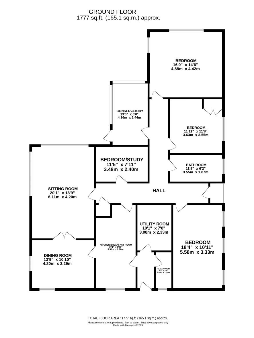 Hall, sitting room, dining room, kitchen/breakfast room, utility room, 3/4 bedrooms, study/bedroom 4, bathroom, cloakroom. Extensive boarded loft with potential to convert.
