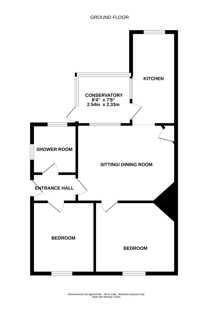Hall, lounge, kitchen, conservatory, two bedrooms, bathroom