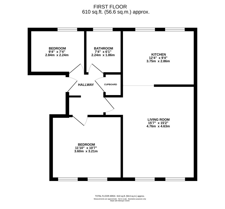 Two bedroom first floor flat extending to around 57 sq/m with garage