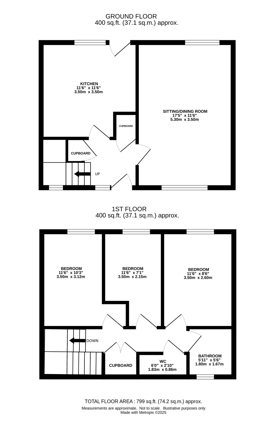 Small front garden, enclosed and private rear garden with shed, side access to residents parking area.