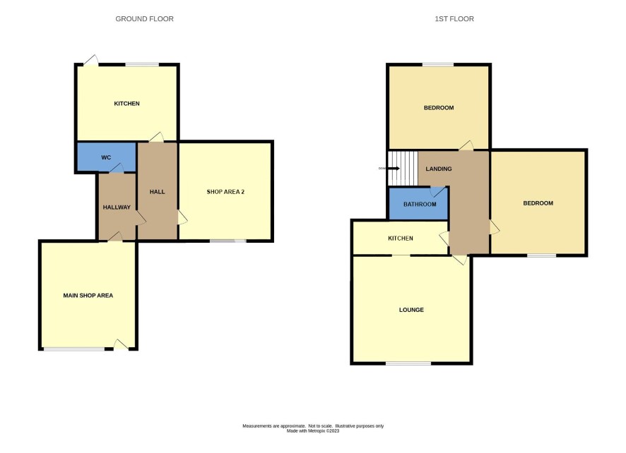 Retail shop, rear hall, retail shop area, kitchen and cloakroom