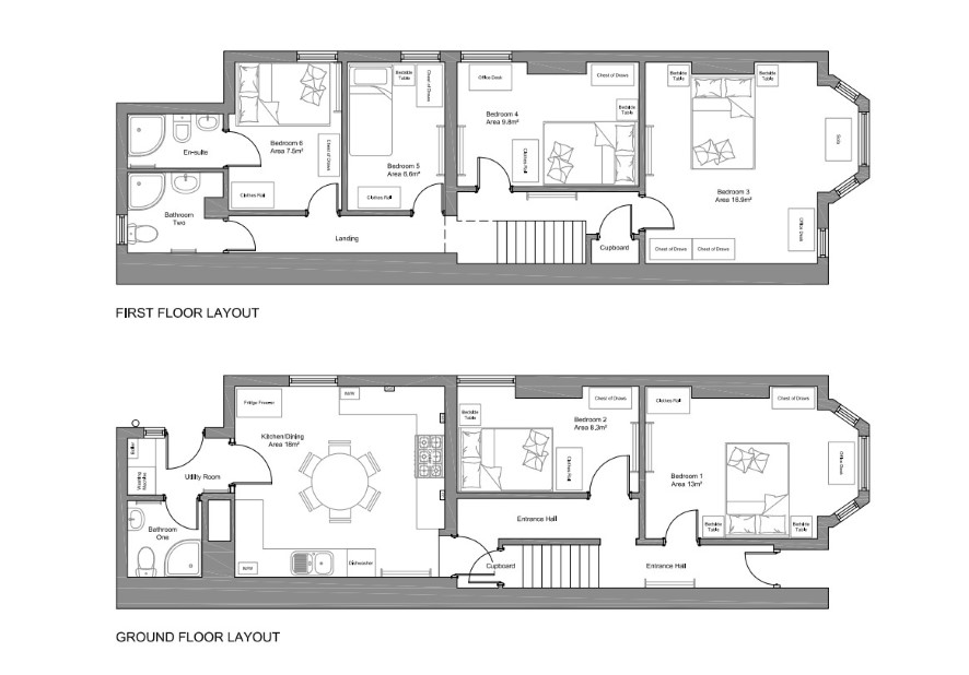 Rooms 3, 4, 5 and 6, (en-suite to room 6) bathroom