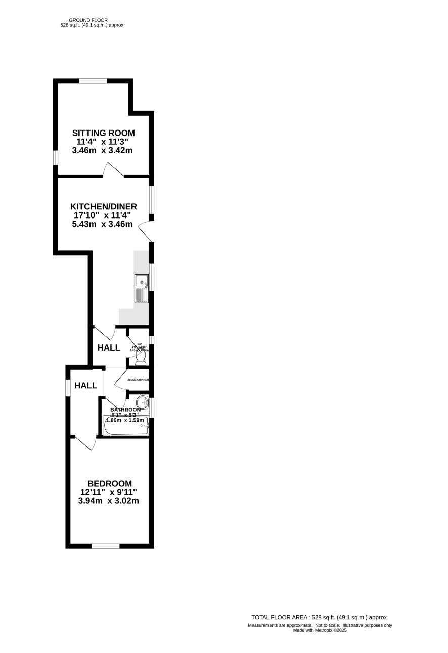 Kitchen/diner, sitting room, inner hall, bathroom, separate w.c., bedroom
