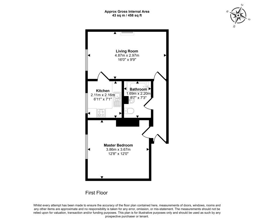 Hall, lounge, kitchen, bedroom and a bathroom.