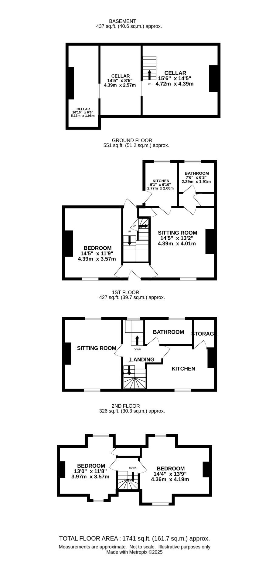 Rear entrance lobby with access to cellars and to the first floor landing, sitting room, kitchen/breakfast room, bathroom, store housing the gas central heating boiler. Second floor landing, two double bedrooms.