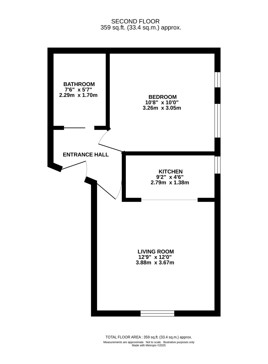 Entrance hall, sitting room opening into kitchen area, bedroom, bathroom.