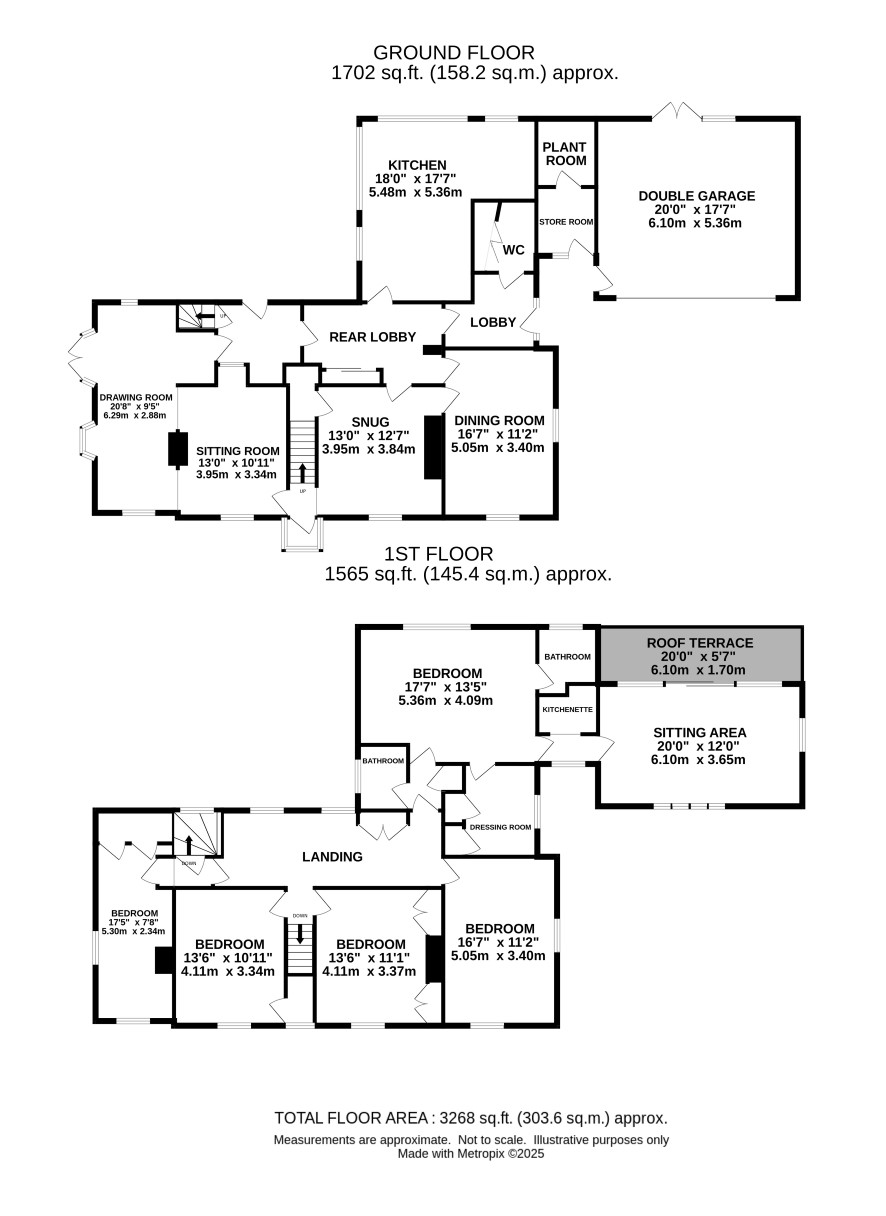Landing 22'5" x 7'5" The Master suite could provide seperate accommodation, if desired Master Bedroom 14'9" x 18' Max En-suite Shower Room Kitchenette Sitting Room 12' x 20'6" Roof Terrace 20' x 10' approx. Dressing Room 5'9" x 7'2" Bedroom 2 19'1" x 15'6" Bedroom 3 13'6" x 11'1" Bedroom 4 13'6" x 10'10" Bedroom 5 17'5" x 7'8" Bathroom/WC Please note there are 2 internal staircases.