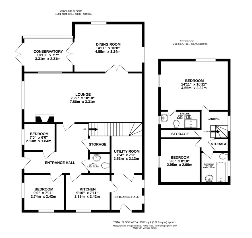 Principal bedroom with ensuite, Bedroom two and main bathroom.