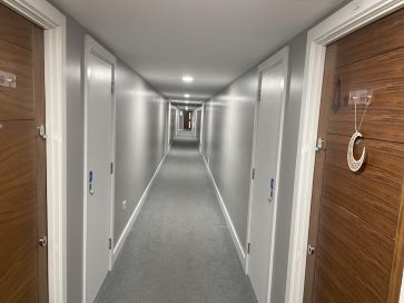 Communal landing area and corridors Personal Entrance Door Entrance Hall 9'2" x 10'8" (max) Lounge 14'3" x 11'4" Balcony approx. 3'3" x 5'6" Kitchen 10'8" x 7'8" Bedroom 1 13'9" x 10'4 Bedroom 2 11' x 10'8" max Bathroom/WC 10'6 x 6'6"