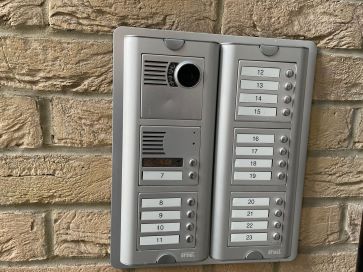Ground floor communal entrance door and lobby with stairs and lifts to all floors.