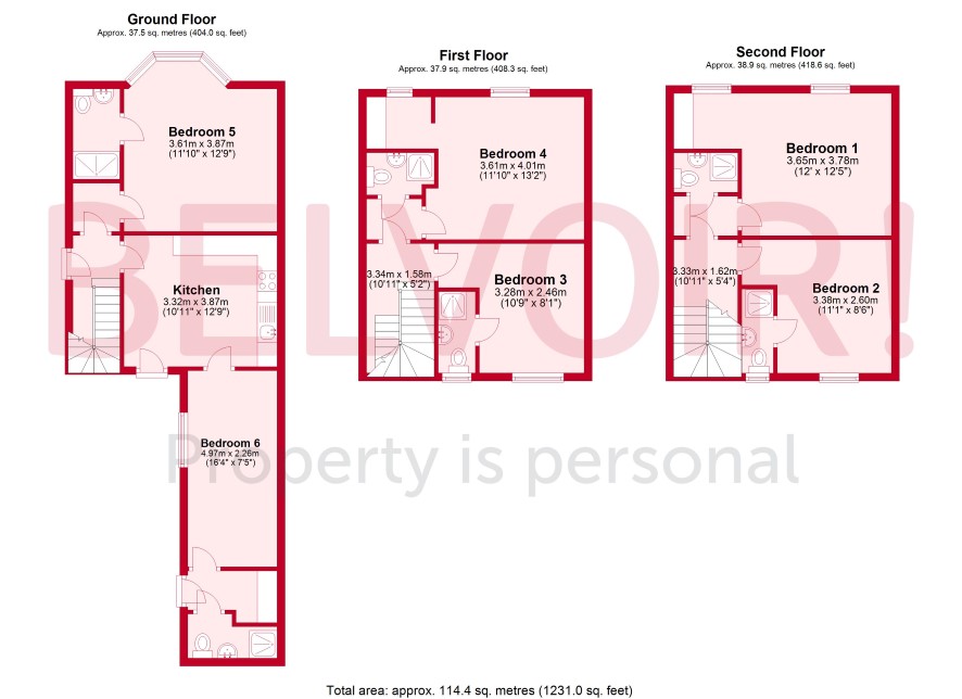 Hall, communal kitchen, bed 6 with kitchen and an ensuite, bed 5 with a ensuite.