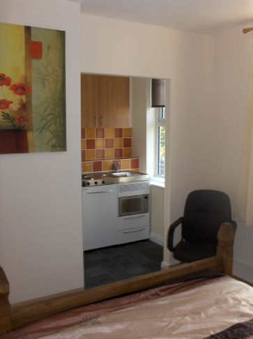 Landing, bed 2 with ensuite and bed 1 with kitchen and ensuite.